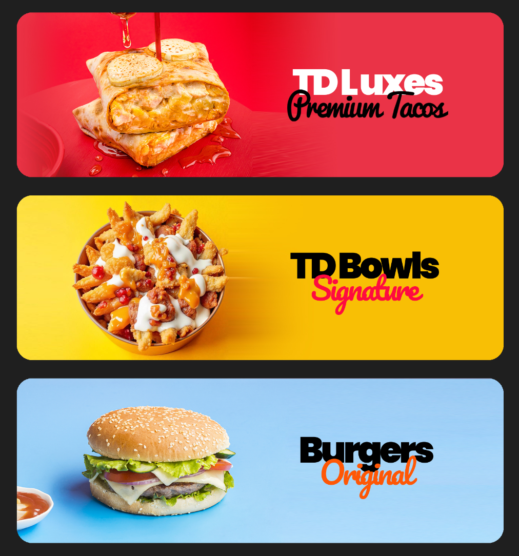 Générosité, fondant, goût… voilà ce qui définit notre gamme TD Luxes. Des French Tacos revisités avec des ingrédients de qualité, des sauces maison et une cuisson parfaite. Une expérience gourmande et réconfortante, que nos clients recommandent sans hésiter.